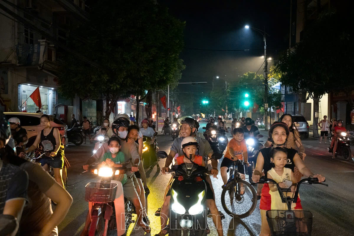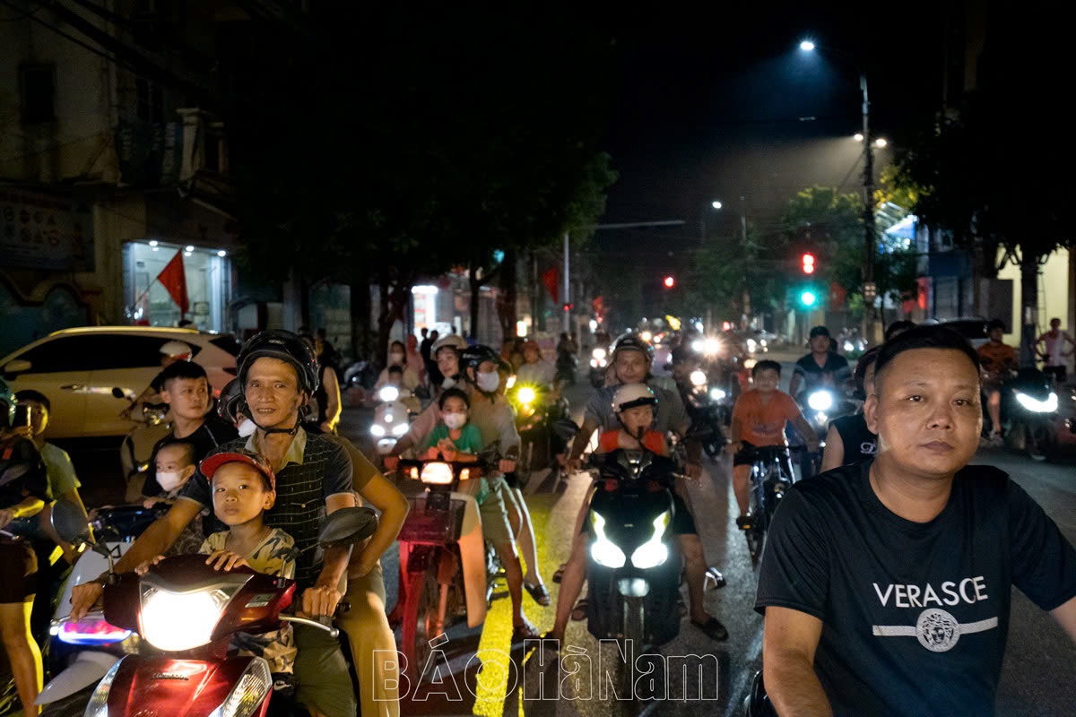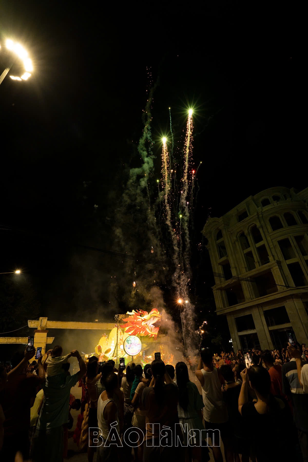 Những chàng trai trẻ của phường hồ hởi tham gia đội múa lân, sư …Những đứa trẻ thành phố vô cùng háo hức trước những hình ảnh vừa lạ, vừa quen từ mô hình “Rồng vàng huyền thoại” .Hình ảnh chú Tễu và Tôn Ngộ Không thầm thì trong lúc dẫn đoàn gây sự chú ý người xem.Những gia đình trẻ đưa con đi xem đoàn rước Đèn Trung thu của phường Trần Hưng Đạo được giao lưu với các nhân vật cổ tích.Dòng người mỗi lúc một đông, theo sát mô hình đi qua các con phố trên địa bàn phường hò reo, cổ vũ.Đoàn rước Đèn đi qua đường phố Trần Hưng Đạo.Hình ảnh ngộ nghĩnh được ghi lại khi đoàn rước đến cổng khu đô thị Nam Trần Hưng Đạo.Những thanh, thiếu niên tham gia đội trống rất cuốn hút người xem bởi những nụ cười, ánh mắt thân thiện và cởi mở…Đoàn diễn diễu mô hình đã đốt pháo hoa ở nhiều khu phố, tạo không khí hội hè, phấn khởi cho nhân dân.