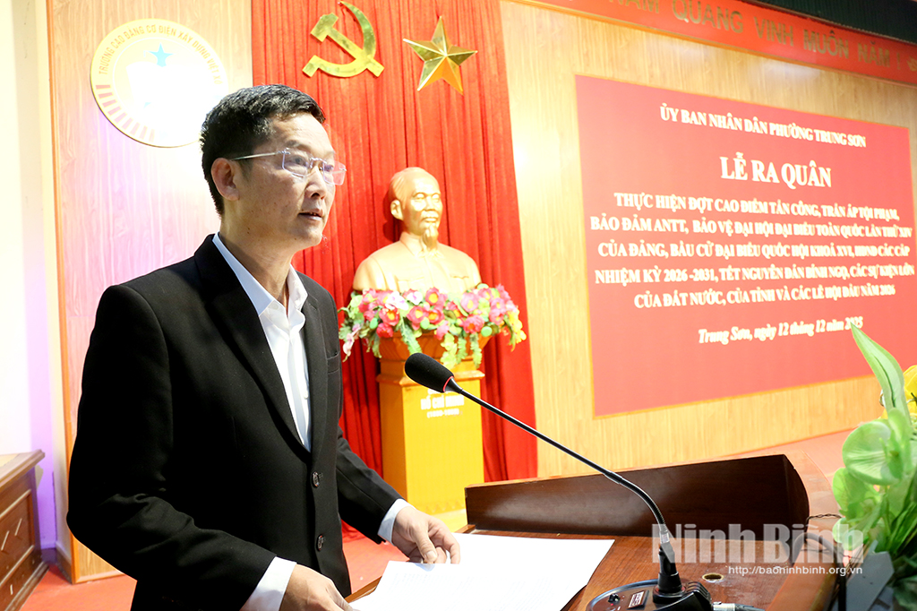Phát biểu tại buổi lễ, đồng chí Tống Đức Thuận, Phó Bí thư Đảng ủy, Chủ tịch UBND phường, nhấn mạnh: Năm 2025 là năm đầu tiên phường Trung Sơn vận hành bộ máy mới sau sắp xếp đơn vị hành chính, với địa bàn rộng hơn, quy mô dân số lớn hơn và nhiều yêu cầu mới đặt ra từ thực tiễn. Đợt cao điểm ra quân tấn công, trấn áp tội phạm, bảo đảm an ninh trật tự, phục vụ Đại hội đại biểu toàn quốc lần thứ XIV của Đảng, bầu cử đại biểu Quốc hội khóa XVI và bầu cử đại biểu HĐND các cấp nhiệm kỳ 2026-2031, Tết Nguyên đán Bính Ngọ 2026 và các sự kiện lớn của đất nước, của tỉnh có ý nghĩa đặc biệt quan trọng.