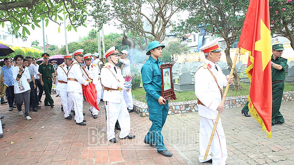 Chiều 2/7, tại Nghĩa trang Liệt sĩ thành phố Nam Định, Đảng ủy, HĐND, UBND, Ủy ban MTTQ phường Trường Thi phối hợp với gia đình, câu lạc bộ Cựu chiến binh cựu học sinh Trường THPT chuyên Lê Hồng Phong Nam Định tổ chức Lễ đón nhận, truy điệu và an táng hài cốt liệt sĩ Nguyễn Như Nghi, sinh năm 1952, nguyên quán tại phường Trần Đăng Ninh (thành phố Nam Định).