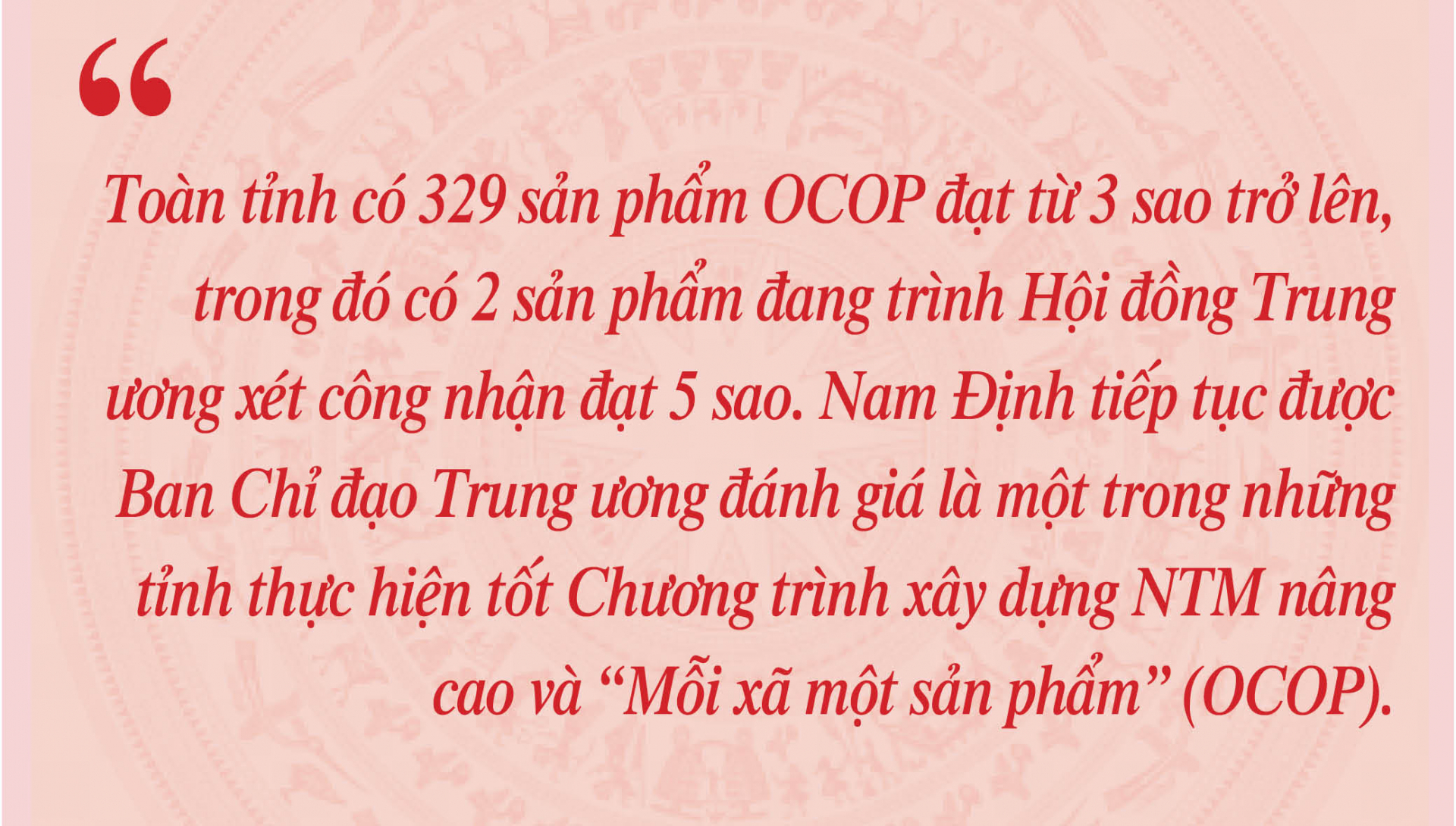 Trong 2 năm (2021-2022), xây dựng NTM nâng cao, kiểu mẫu ở tỉnh đã đạt được những kết quả quan trọng. Đến tháng 12-2022, toàn tỉnh có 182 xã, thị trấn (bằng 89% tổng số xã, thị trấn) đã được công nhận đạt chuẩn NTM nâng cao theo Bộ tiêu chí của tỉnh (vượt chỉ tiêu xã NTM nâng cao theo Nghị quyết số 06-NQ/TU của BCH Đảng bộ tỉnh); xã Giao Phong (Giao Thuỷ) là xã đầu tiên của tỉnh được công nhận đạt chuẩn NTM kiểu mẫu; có 22 xã đang tập trung hoàn thành tiêu chí và hồ sơ đề nghị xét, công nhận đạt chuẩn NTM kiểu mẫu vào đầu năm 2023; có trên 570 thôn, xóm (sau sắp xếp, sáp nhập) được công nhận đạt chuẩn NTM kiểu mẫu. Đi đầu trong phong trào của tỉnh là huyện Hải Hậu, địa phương đã thực hiện hiệu quả Đề án xây dựng thí điểm mô hình huyện NTM kiểu mẫu “Sáng, xanh, sạch, đẹp để phát triển bền vững”[1]. Toàn tỉnh có 329 sản phẩm OCOP đạt từ 3 sao trở lên, trong đó có 2 sản phẩm đang trình Hội đồng Trung ương xét công nhận đạt 5 sao. Nam Định tiếp tục được Ban Chỉ đạo Trung ương đánh giá là một trong những tỉnh thực hiện tốt Chương trình xây dựng NTM nâng cao và “Mỗi xã một sản phẩm” (OCOP).