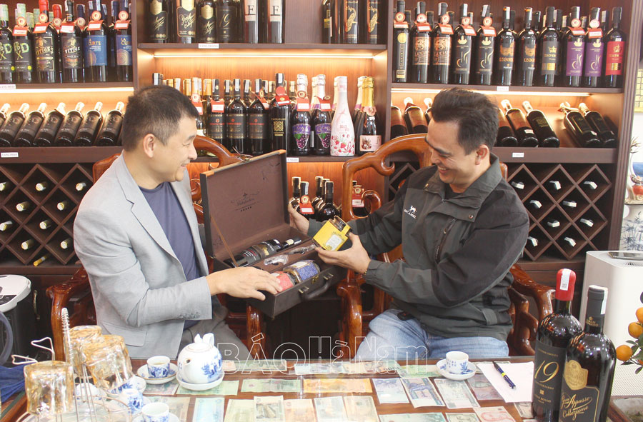 Anh Nguyễn Như Thế, tổ dân phố Đô Lương, phường Yên Bắc (Duy Tiên) - khách hàng “ruột” của cửa hàng Rượu tốt Quang Anh cho hay: Dịp Tết năm nào tôi cũng mua rượu vang nhập khẩu để tặng người thân, nhân viên và đối tác. Rượu vang cao cấp là món quà thể hiện sự trân trọng, tinh tế và đẳng cấp của doanh nghiệp dành cho đối tác, khách hàng và nhân viên. Gia đình tôi cũng sử dụng rượu vang trong các bữa ăn liên hoan và tiếp khách trong những ngày Tết. Tôi thường chọn mua hai loại vang Pháp và Ý với mức giá từ 700.000 đồng đến 1 triệu đồng mỗi chai.