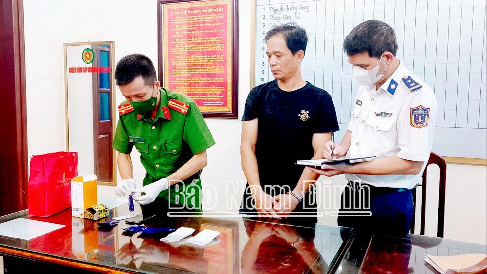| Phòng Cảnh sát Điều tra tội phạm về ma túy (Công an tỉnh) phối hợp Bộ Tư lệnh Cảnh sát Biển Việt Nam, Cục Hải quan Hà Nam Ninh triệt phá đường dây vận chuyển ma túy tổng hợp dạng thuốc lắc từ Hà Nội về Nam Định. Ảnh: Công an tỉnh cung cấp |