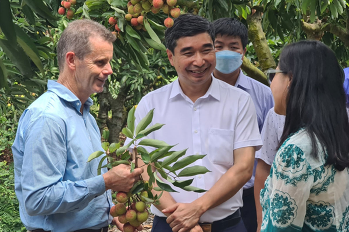 Không chỉ có sức hút đối với doanh nghiệp, quả vải Hải Dương còn hấp dẫn nhiều đoàn chuyên gia của nước ngoài. Mới đây, vùng vải ở xã Thanh Quang (Thanh Hà) đã tiếp đón đoàn công tác của Bộ Nông nghiệp, Nước và Môi trường Australia. Ông Peter Creaser, Trợ lý Bộ trưởng Nông nghiệp, Nước và Môi trường Australia chia sẻ: "Vải được nông dân trồng theo quy trình nghiêm ngặt, quả vải được xử lý qua nhiều công đoạn trước khi xuất sang nước chúng tôi. Với quy trình như vậy, quả vải Hải Dương chắc chắn sẽ đáp ứng yêu cầu của nước nhập khẩu. Chúng tôi sẽ xem xét để tạo điều kiện thuận lợi cho các doanh nghiệp xuất khẩu vải tươi Việt Nam vào thị trường Australia".