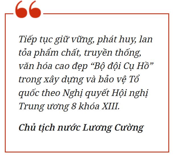 Chủ tịch nước nhấn mạnh Đảng, Nhà nước và Nhân dân tin tưởng rằng, Quân đội nhân dân Việt Nam sẽ không ngừng phát huy truyền thống anh hùng, sự nghiệp vẻ vang, tiếp tục lập nên những chiến công xuất sắc, cùng toàn Đảng, toàn dân bước vào kỷ nguyên mới, kỷ nguyên vươn mình và phồn vinh, hạnh phúc của dân tộc, xây dựng và bảo vệ Tổ quốc Việt Nam xã hội chủ nghĩa.