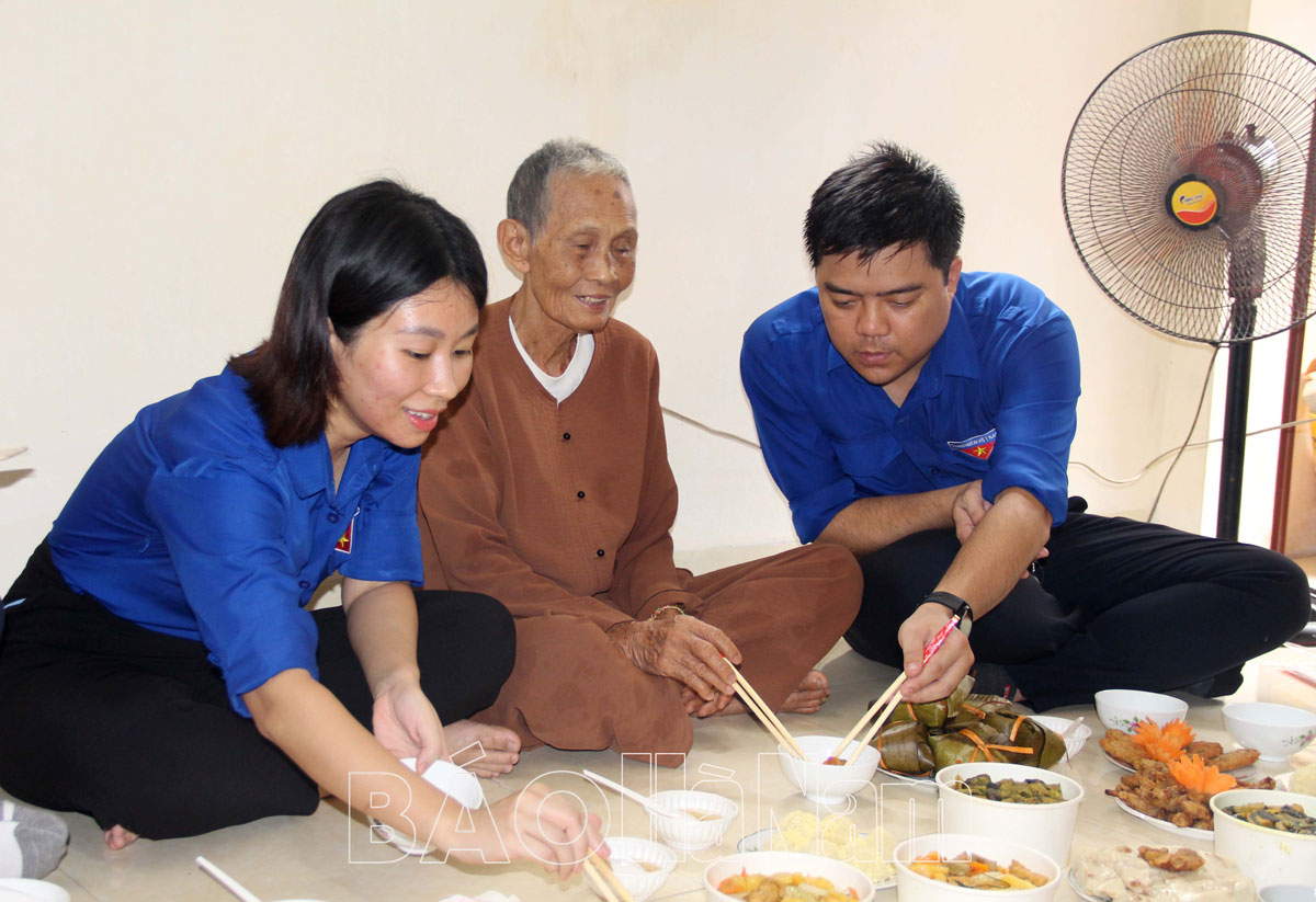 Cùng đó, Chi đoàn Sở Nội vụ phối hợp với Đoàn thanh niên phường Hai Bà Trưng (thành phố Phủ Lý) tổ chức “Bữa cơm sum vầy” tại gia đình bà Vũ Thị Phố, thân nhân liệt sĩ Đinh Văn Trác, hiện đang sống neo đơn tại tổ dân phố số 8, phường Hai Bà Trưng. Các đoàn viên, thanh niên đã có mặt từ rất sớm, vệ sinh nhà cửa; đi chợ, nấu thức ăn và dùng bữa cơm chay cùng bà Vũ Thị Phố, trong không khí ấm cúng, sum vầy.