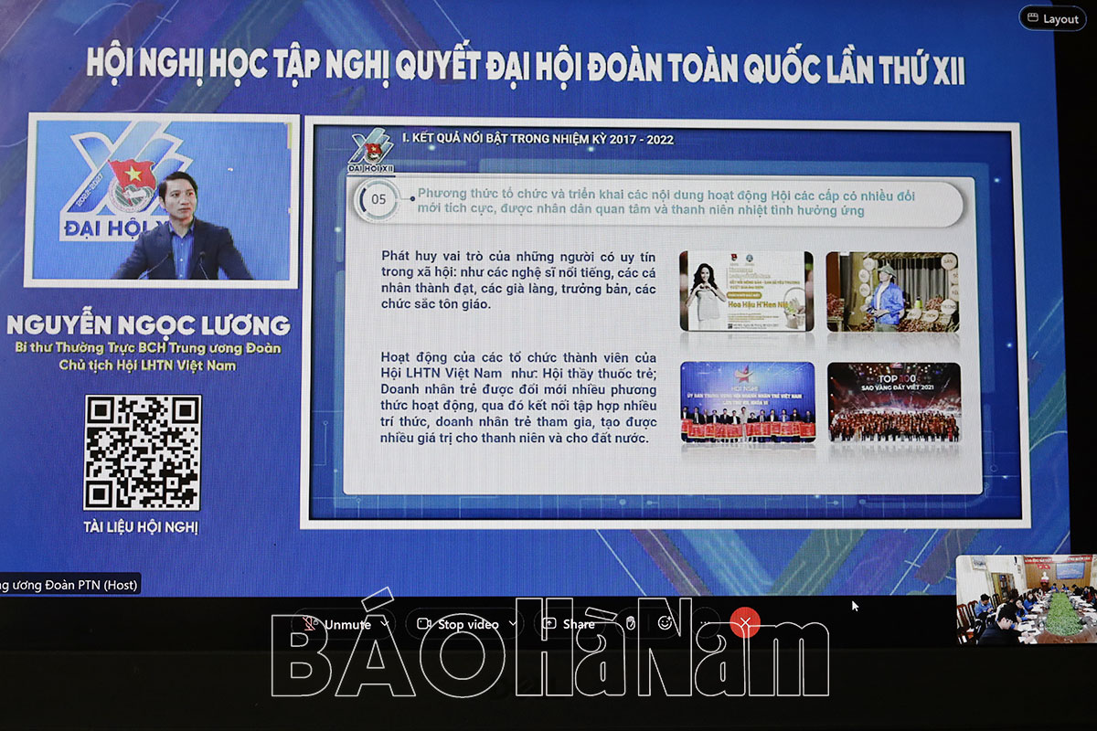 Trong 2 ngày (4-5/3), Trung ương Đoàn tổ chức hội nghị trực tuyến nghiên cứu, học tập, quán triệt và tuyên truyền Nghị quyết Đại hội Đoàn toàn quốc lần thứ XII, nhiệm kỳ 2022-2027. Dự và phát biểu khai mạc hội nghị tại điểm cầu Trung ương có đồng chí Nguyễn Ngọc Lương, Bí thư Thường trực Ban Chấp hành Trung ương Đoàn, Chủ tịch Trung ương Hội LHTN Việt Nam. Điểm cầu tại Tỉnh đoàn và các huyện, thị, thành đoàn, đoàn trực thuộc và đoàn cơ sở có sự tham gia học tập của đông đảo cán bộ đoàn, đoàn viên thanh niên trong tỉnh.