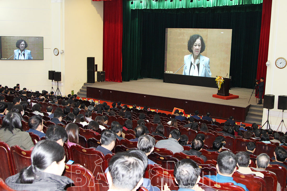 Trong chiều ngày 5/12, các đại biểu học tập, quán triệt Nghị quyết số 28 ngày 17/11/2022 về "Tiếp tục đổi mới phương thức lãnh đạo, cầm quyền của Đảng đối với hệ thống chính trị trong giai đoạn mới", do đồng chí Trương Thị Mai, Ủy viên Bộ Chính trị, Bí thư Trung ương Đảng, Trưởng Ban Tổ chức Trung ương truyền đạt.