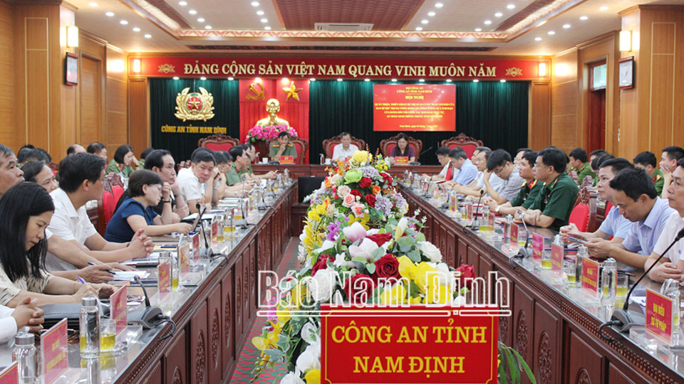 | Các đồng chí: Lê Quốc Chỉnh, Phó Bí thư Thường trực Tỉnh ủy, Chủ tịch HĐND tỉnh, Trưởng đoàn Đoàn đại biểu Quốc hội tỉnh; Đại tá Trần Minh Tiến, Ủy viên Ban TVTU, Giám đốc Công an tỉnh; Hà Lan Anh, TUV, Phó Chủ tịch UBND tỉnh, Phó Trưởng Ban Thường trực Ban ATGT tỉnh tham dự hội nghị tại điểm cầu tỉnh Nam Định. |