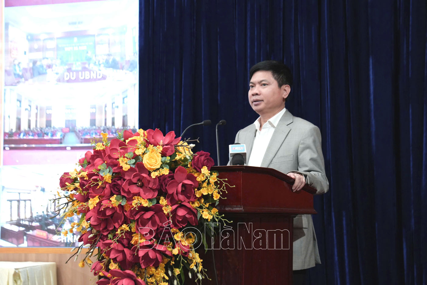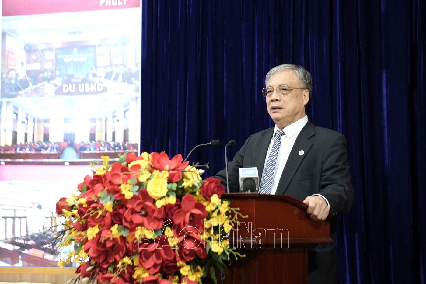 Tiếp theo chương trình hội nghị, PGS.TS Trần Đình Thiên, Nguyên Viện trưởng Viện Kinh tế Việt Nam truyền đạt chuyên đề đột phá phát triển khoa học, công nghệ, đổi mới sáng tạo và chuyển đổi số quốc gia. Trong đó, tập trung phân tích, làm rõ đặc điểm của thời đại; nội hàm và đặc trưng của nền kinh tế mới; tầm quan trọng của Nghị quyết 57 trong tình hình mới; những quan điểm chỉ đạo, mục tiêu quốc gia về phát triển khoa học công nghệ, đổi mới sáng tạo và chuyển đổi số quốc gia; các nhiệm vụ, giải pháp (đột phá, đổi mới tư duy; đưa thể chế thành một lợi thế cạnh tranh; trọng dụng nhân tài…). Đồng thời nhấn mạnh những vấn đề căn cốt đối với tỉnh Hà Nam như: đánh giá thực lực, thực trạng, tiềm năng, lợi thế; quan điểm chỉ đạo riêng của tỉnh; nhận thức về tình thế và cơ hội; mục tiêu cốt lõi so với mục tiêu chung của cả nước; mục tiêu vị thế của Hà Nam trong nền kinh tế, trong vùng…