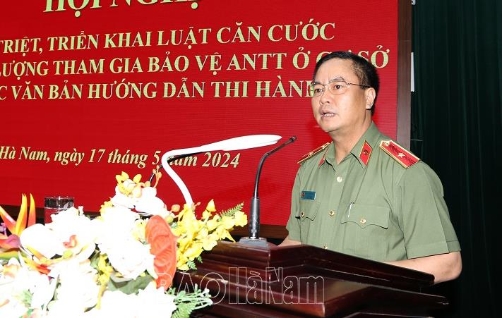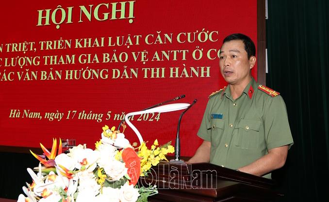 Phát biểu khai mạc hội nghị, Đại tá Tô Anh Dũng, Ủy viên BTV Tỉnh uỷ, Giám đốc Công an tỉnh khẳng định: Luật Căn cước và Luật lực lượng tham gia bảo vệ an ninh trật tự ở cơ sở được thông qua tại Kỳ họp thứ 6 Quốc hội khóa XV, có hiệu lực thi hành từ ngày 01/7/2024 là các văn bản luật quan trọng, được Quốc hội, Chính phủ, Đảng ủy Công an Trung ương, lãnh đạo Bộ Công an đặc biệt quan tâm chỉ đạo, có liên quan trực tiếp đến quyền, lợi ích của người dân và công tác bảo đảm an ninh, trật tự.