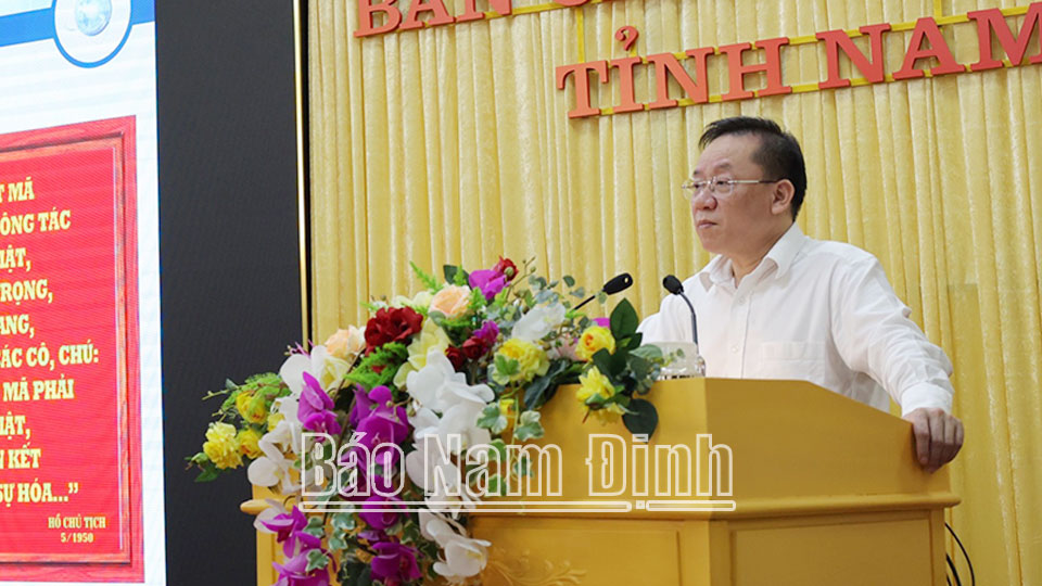 Phát biểu tại hội nghị, đồng chí Trưởng Ban Tuyên giáo Tỉnh uỷ Phạm Thị Thu Hằng khẳng định tầm quan trọng của hoạt động cơ yếu thuộc lĩnh vực an ninh quốc gia. Xuất phát từ vai trò, vị trí và tầm quan trọng của ngành Cơ yếu, Bộ Chính trị đã ban hành Nghị quyết số 56. Đối với tỉnh Nam Định, xác định đây là nhiệm vụ cơ bản, cấp thiết, là trách nhiệm của cả hệ thống chính trị, vì vậy sau khi Nghị quyết được ban hành, Tỉnh uỷ đã ban hành kế hoạch triển khai trong toàn Đảng bộ. Qua đó, giúp các địa phương làm tốt hơn công tác rà soát, có giải pháp khắc phục những hạn chế, thiếu sót trong công tác bảo vệ bí mật Đảng, Nhà nước tại cơ quan, đơn vị, địa phương thuộc phạm vi phụ trách./.