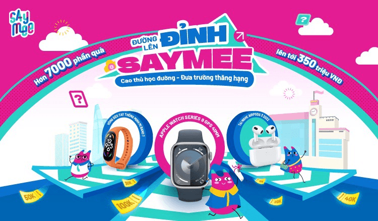 Một sự kiện bùng nổ dịp cuối năm mang tên Đường lên đỉnh Saymee chính thức khởi động, cơ hội “săn” quà công nghệ khủng như Apple Watch Series 9 GPS, Tai nghe AirPods 3... đã lộ diện khi tham gia Quay số trúng thưởng. Không chỉ vậy, phần thưởng lên tới 40 triệu đồng cùng hơn 7000 voucher giá trị đang chờ bạn chinh phục trên chặng đua Đường lên đỉnh Saymee, sẵn sàng luyện cơ tay, tham gia quay thưởng, tận hưởng niềm vui chiến thắng ngay thôi!!