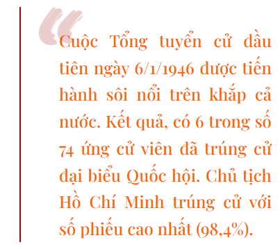 Ngày 6/1/1946, toàn thể nhân dân Việt Nam, dưới sự lãnh đạo của Đảng và Chủ tịch Hồ Chí Minh đã tiến hành cuộc Tổng tuyển cử đầu tiên bầu ra Quốc hội khóa I.