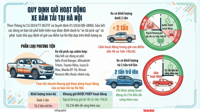 Quy định giờ hoạt động xe bán tải tại Hà Nội