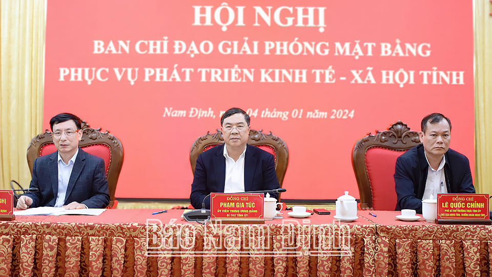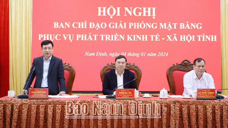 Các đồng chí: Phạm Gia Túc, Ủy viên BCH Trung ương Đảng, Bí thư Tỉnh ủy, Trưởng ban Ban Chỉ đạo; Lê Quốc Chỉnh, Phó Bí thư Thường trực Tỉnh ủy, Chủ tịch HĐND tỉnh, Trưởng đoàn Đoàn đại biểu Quốc hội tỉnh, Phó Trưởng Ban Chỉ đạo; Phạm Đình Nghị, Phó Bí thư Tỉnh ủy, Chủ tịch UBND tỉnh, Phó Trưởng ban Thường trực Ban Chỉ đạo đồng chủ trì hội nghị. Dự hội nghị có các đồng chí thành viên Ban Chỉ đạo GPMB tỉnh, đại diện Văn phòng Tỉnh ủy, UBND tỉnh.
