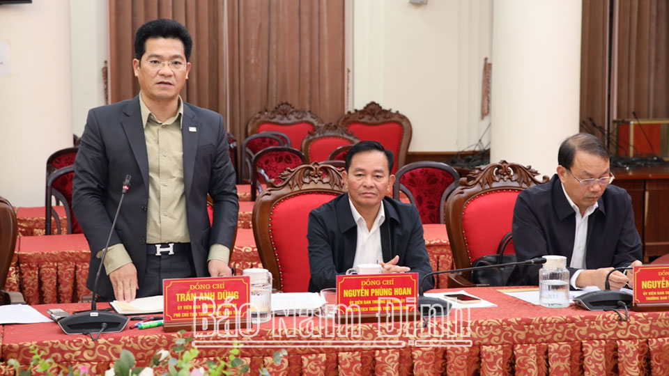 | Đồng chí Trần Anh Dũng, Ủy viên Ban TVTU, Phó Chủ tịch Thường trực UBND tỉnh phát biểu tại hội nghị. |