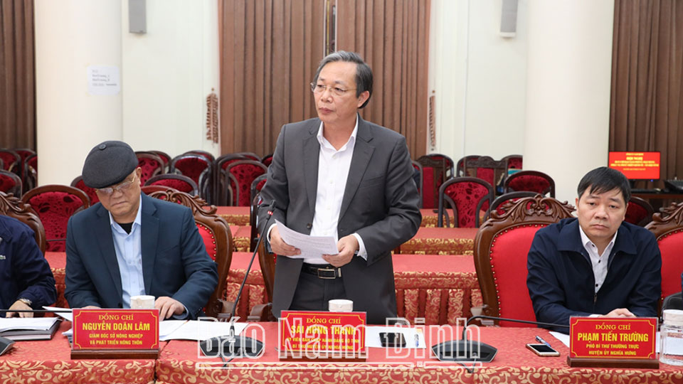| Đồng chí Sái Hồng Thanh, TUV, Bí thư Huyện ủy Nghĩa Hưng trình bày báo cáo tại hội nghị. |