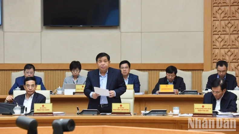 | Bộ trưởng Kế hoạch và Đầu tư Nguyễn Chí Dũng phát biểu ý kiến tại phiên họp. |