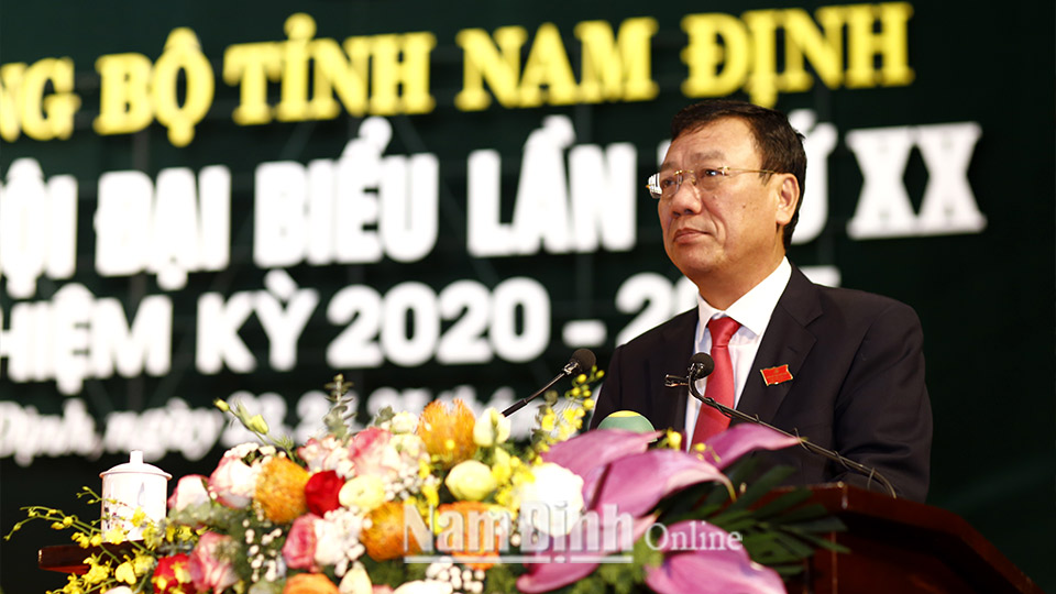 Phát biểu bế mạc Đại hội, đồng chí Bí thư Tỉnh ủy Đoàn Hồng Phong nhấn mạnh: Với tinh thần tích cực, khẩn trương, dân chủ và trách nhiệm cao, Đại hội đại biểu Đảng bộ tỉnh lần thứ XX, nhiệm kỳ 2020-2025 đã hoàn thành các nội dung, chương trình đề ra. Ban Chấp hành Đảng bộ tỉnh khóa XX, nhiệm kỳ 2020-2025 sẽ tiếp tục phát huy những kết quả đã đạt được trong nhiệm kỳ qua; đồng thời tiếp tục phát huy tinh thần đoàn kết, thống nhất, đồng sức, đồng lòng, quyết tâm đưa Nam Định phát triển để đạt được mục tiêu “Đến năm 2030, Nam Định là tỉnh phát triển khá của cả nước”.