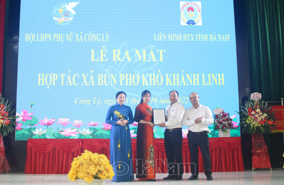 Sáng 13/10, Liên minh Hợp tác xã (HTX) tỉnh phối hợp với Hội Liên hiệp phụ nữ xã Công Lý (Lý Nhân) tổ chức ra mắt HTX Bún phở khô Khánh Linh.