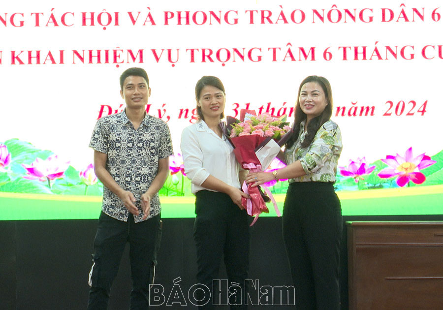 Lãnh đạo Hội Nông dân huyện Lý Nhân tặng hoa chúc mừng tổ hợp tác.