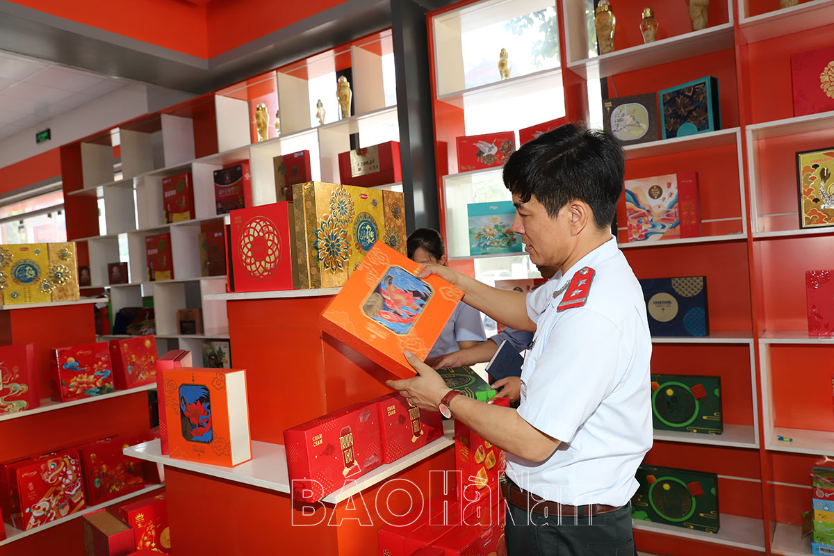 Các thành viên trong đoàn cũng kiểm tra các sản phẩm được bán tại cửa hàng, đặc biệt là sản phẩm bánh Trung thu, loại bánh truyền thống mà gia đình nào cũng mua vào dịp Tết Trung thu.