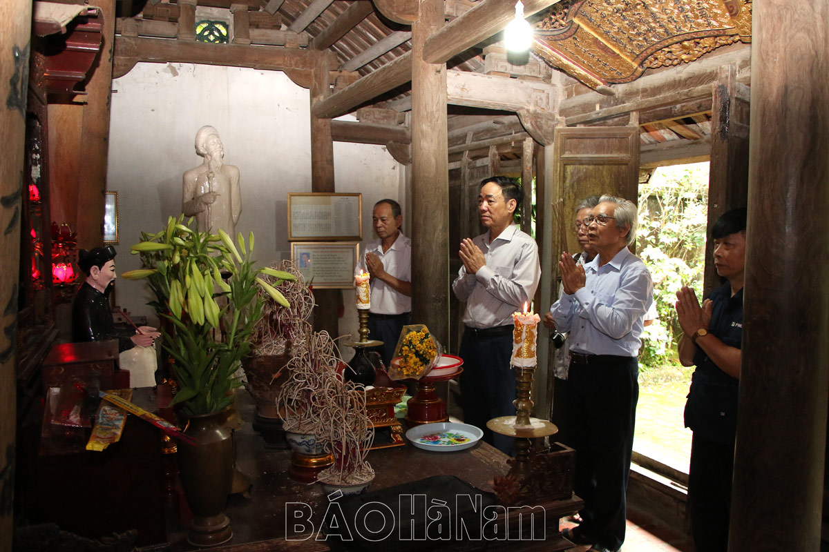 8h sáng, các đồng chí lãnh đạo huyện Bình Lục và xã Trung Lương bắt đầu nghi thức dâng hương truyền thống, đọc diễn văn nhắc nhớ công lao và những đóng góp của nhà thơ với sự nghiệp văn học, văn hóa nước nhà.