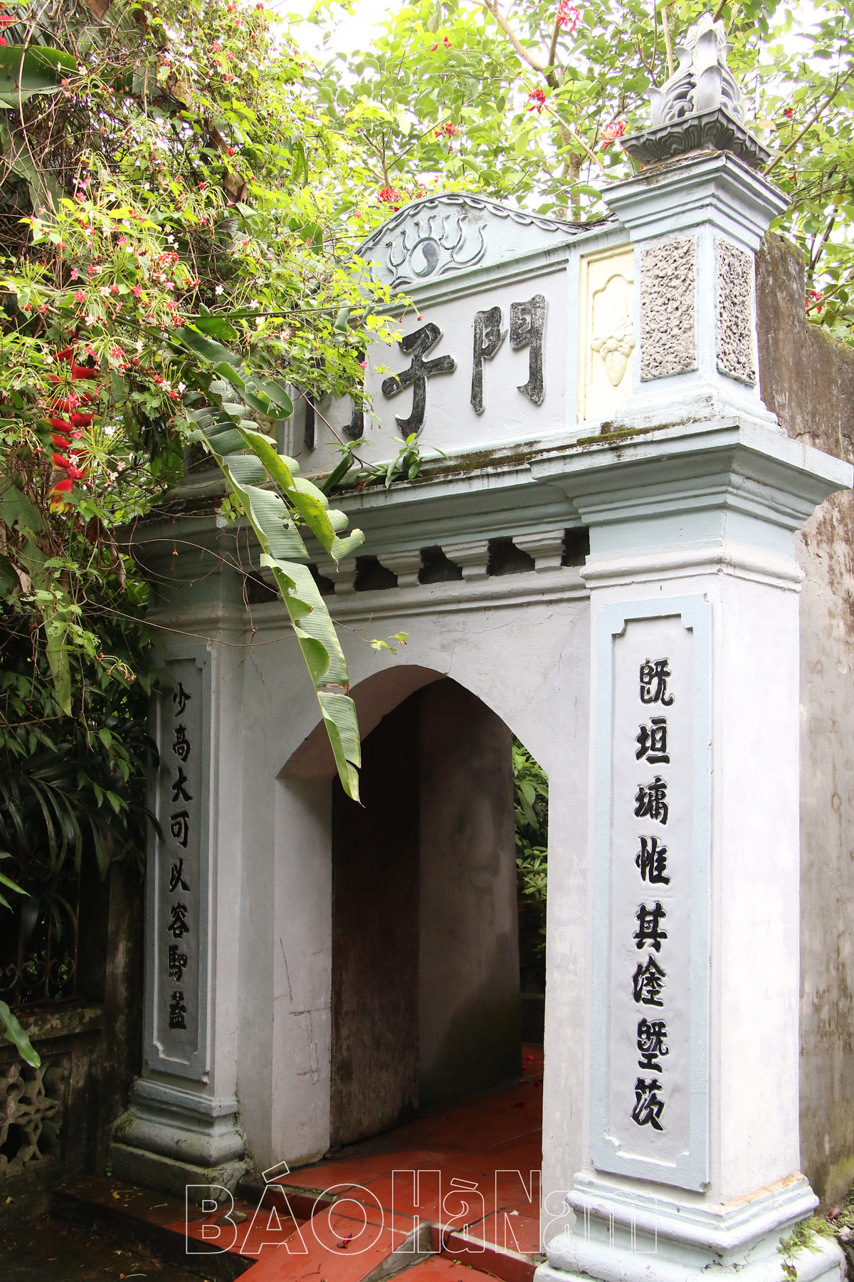 Trời mưa bụi, con đường vào nhà cụ Tam trở nên ẩm ướt, nhưng lại gợi cảm nhiều chuyện về mùa xuân. Những bông hoa nở trong sương sớm, tiếng gà líu ríu dưới bụi cây, tiếng chân người vội bước trên con đường bê tông dẫn vào nhà cụ… làm ai đó yêu thơ Nguyễn Khuyến không thể không thầm đọc trong tâm những vần điệu của “Ngày xuân dạy các con”, “Xuân nhật”… Cảm giác nhớ làng, nhớ những cảnh vật xưa cũ, nhớ mùa xuân năm nao. Đây rồi “Môn tử Môn” – cửa ra vào của học trò. Chữ khắc trên cổng vào nhà cụ bao năm tháng vẫn không mờ ẩn ý sâu xa dăn dạy học trò đạo lễ làm trò. Chiếc cổng ấy là một trong những biểu trưng đậm nét nhất ở Từ đường của cụ Tam Nguyên.