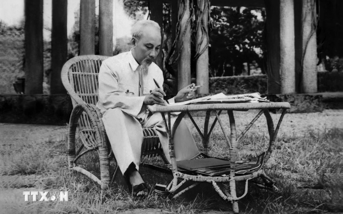 | Chủ tịch Hồ Chí Minh làm việc tại Phủ Chủ tịch. (Ảnh: Tư liệu TTXVN) |
