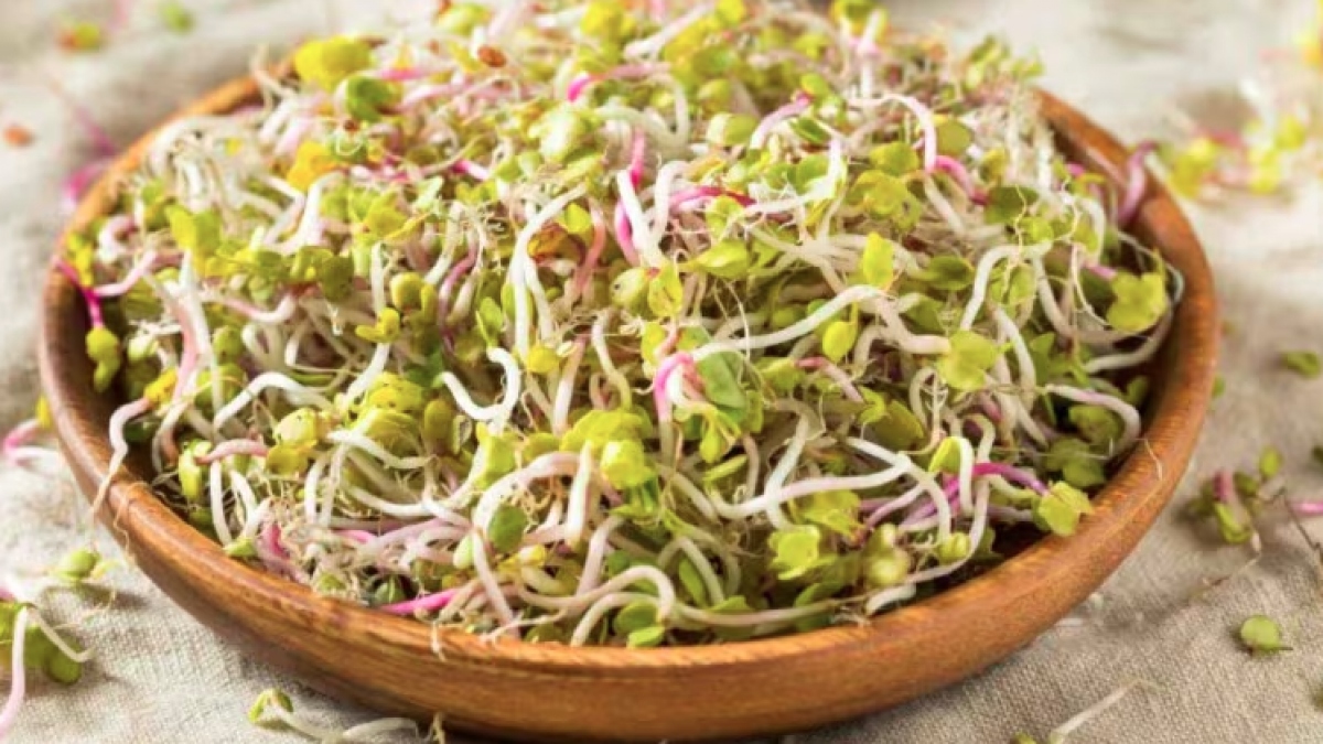 Rau mầm là những cây non được thu hoạch vài ngày sau khi hạt nảy mầm. Một số loại rau mầm phổ biến bao gồm giá đỗ, mầm cỏ linh lăng, mầm đậu lăng và ngũ cốc nảy mầm. Theo chuyên gia sức khỏe, rau mầm rất giàu chất xơ, axit amin thiết yếu, vitamin D, A, C, K và E. Chúng cũng là nguồn cung cấp sắt, magie, folate và canxi dồi dào.