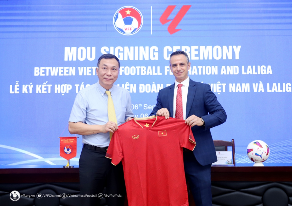 Ngày 6/9, tại trụ sở Liên đoàn Bóng đá Việt Nam đã diễn ra Lễ ký kết bản ghi nhớ hợp tác giữa VFF và đại diện LaLiga (giải VĐQG Tây Ban Nha) kéo dài tới tháng 6/2026. Thỏa thuận này đồng nghĩa với việc hai đội bóng hàng đầu LaLiga là Real Madrid và Barca luôn rộng cửa chào đón các tài năng trẻ của bóng đá Việt Nam.