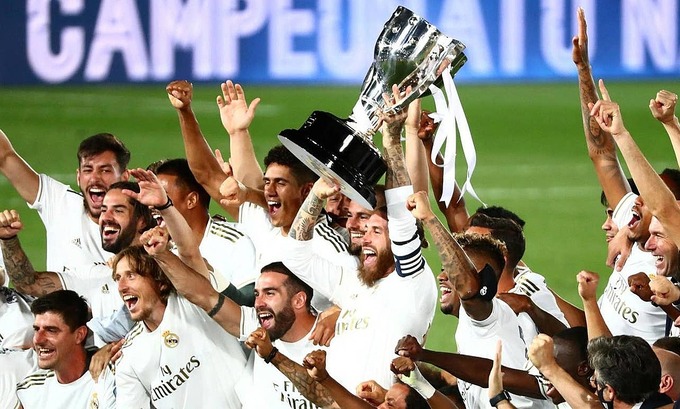 Real Madrid vô địch La Liga lần thứ 34, sau khi thắng đội khách Villarreal 2-1 ở vòng 37, tối 16/7.