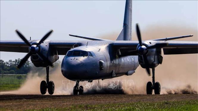 Máy bay vận tải Antonov An-26 trong cuộc diễn tập ở miền Nam Nga.