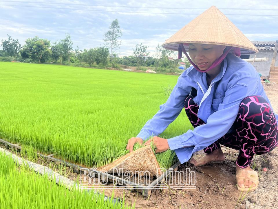 | Áp dụng máy cấy giúp gia đình anh Nguyễn Văn Hưng ở thôn Trung Cấp, xã Tam Thanh (Vụ Bản) giảm đáng kể công lao động nặng nhọc trong sản xuất vụ lúa xuân này. |