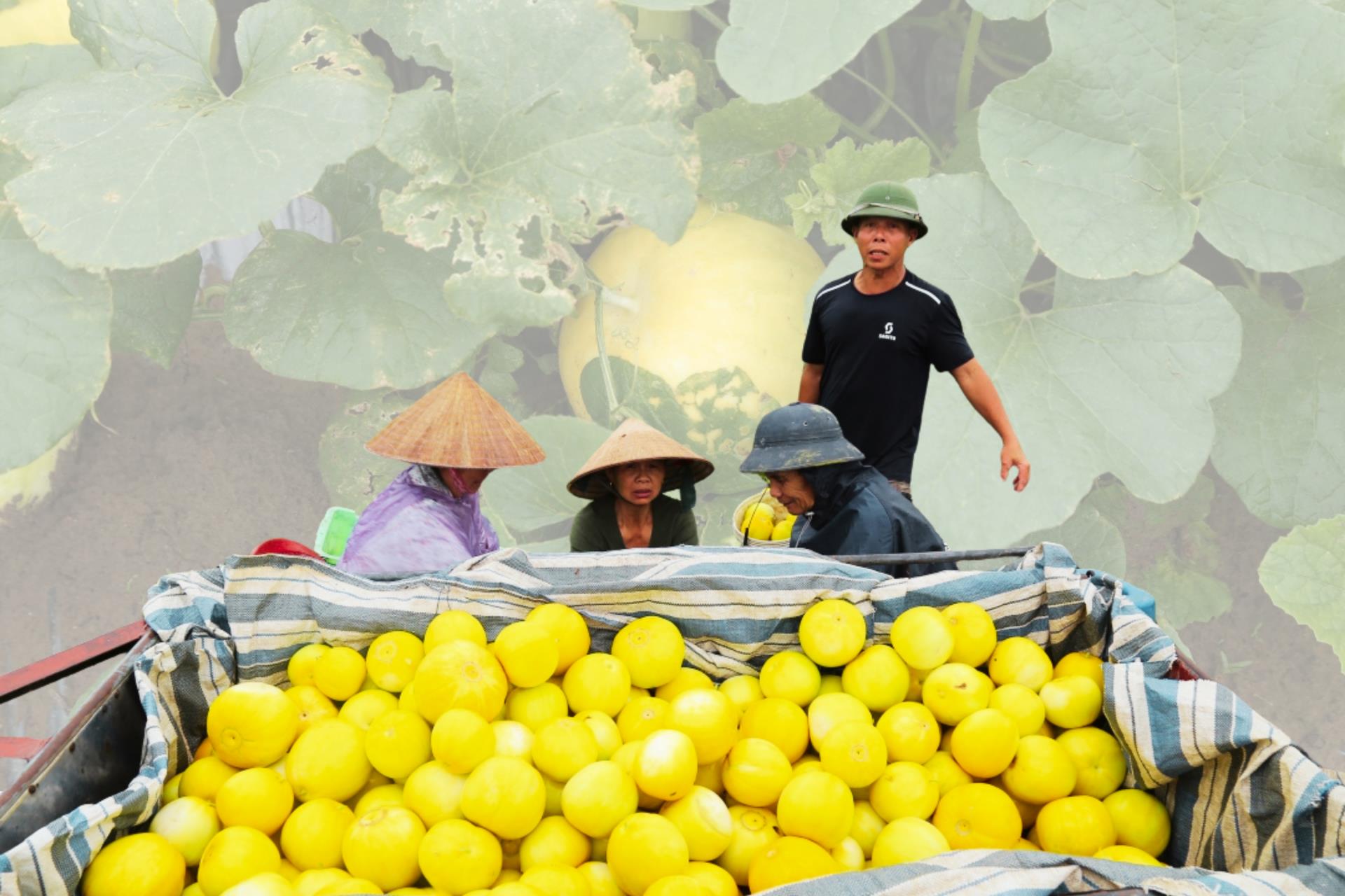 | Niềm vui của những người nông dân khi thu hoạch dưa. |