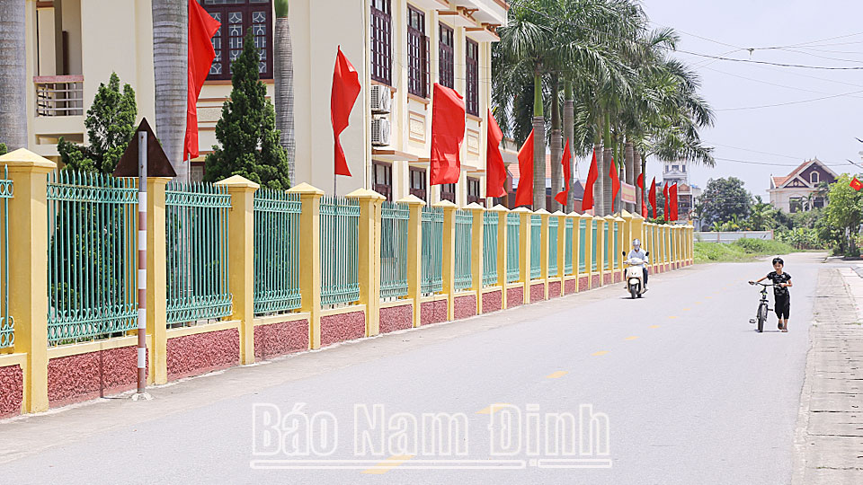 | Trung tâm huyện Hải Hậu trang hoàng cờ Đảng, cờ Tổ quốc. |