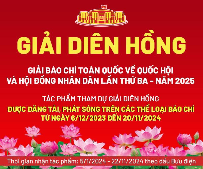 Tối 5/1, Lễ trao Giải Báo chí toàn quốc về Quốc hội và Hội đồng nhân dân (Giải Diên Hồng) lần thứ ba năm 2025 đã được tổ chức tại Cung Văn hóa Lao động Hữu nghị Việt - Xô (Hà Nội). Đây là sự kiện quan trọng, rất có ý nghĩa kỷ niệm 79 năm Ngày Tổng tuyển cử đầu tiên bầu Quốc hội Việt Nam (6/1/1946 - 6/1/2025).