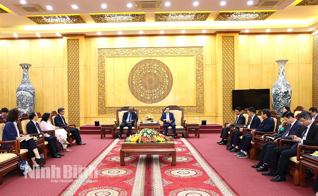 Sáng 16/7, đồng chí Trương Quốc Huy, Bí thư Tỉnh ủy, Trưởng Đoàn đại biểu Quốc hội tỉnh đã tiếp và làm việc với Đoàn công tác của Tổ chức Lương thực và Nông nghiệp Liên hợp quốc do bà Beth Bechdol, Phó Tổng Giám đốc Tổ chức Lương thực và Nông nghiệp Liên hợp quốc (FAO) làm Trưởng đoàn nhân chuyến thăm, tìm hiểu thực tế về phát triển sản phẩm OCOP tại tỉnh Ninh Bình.