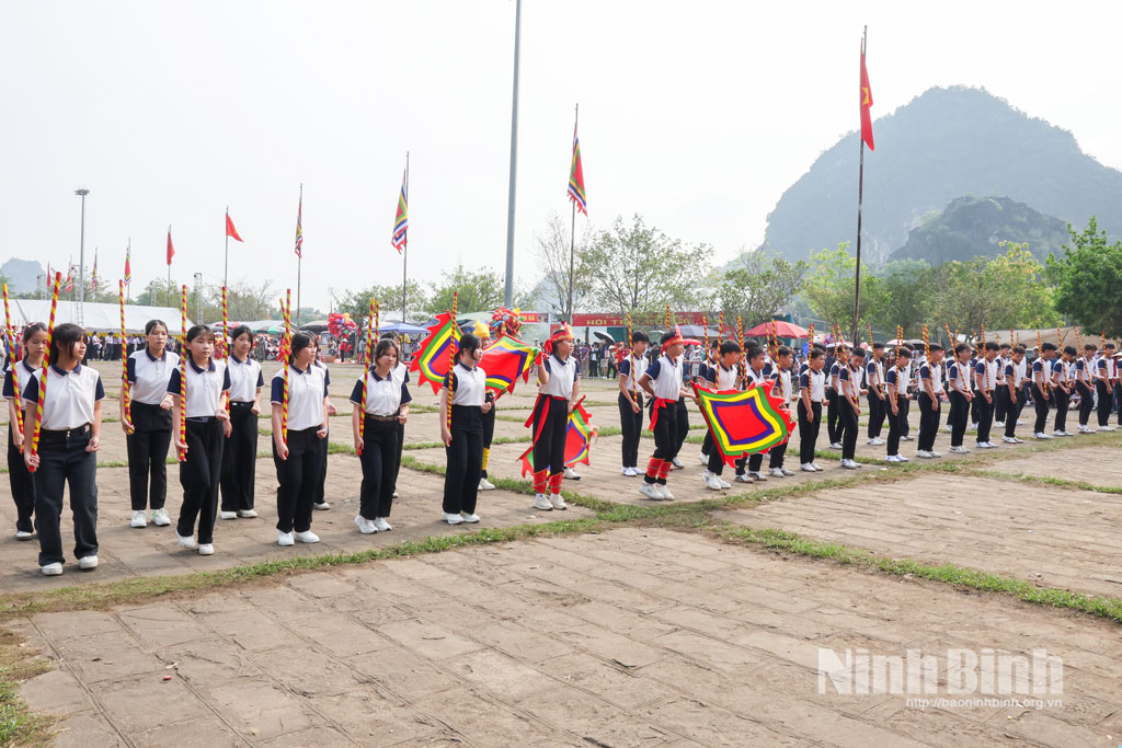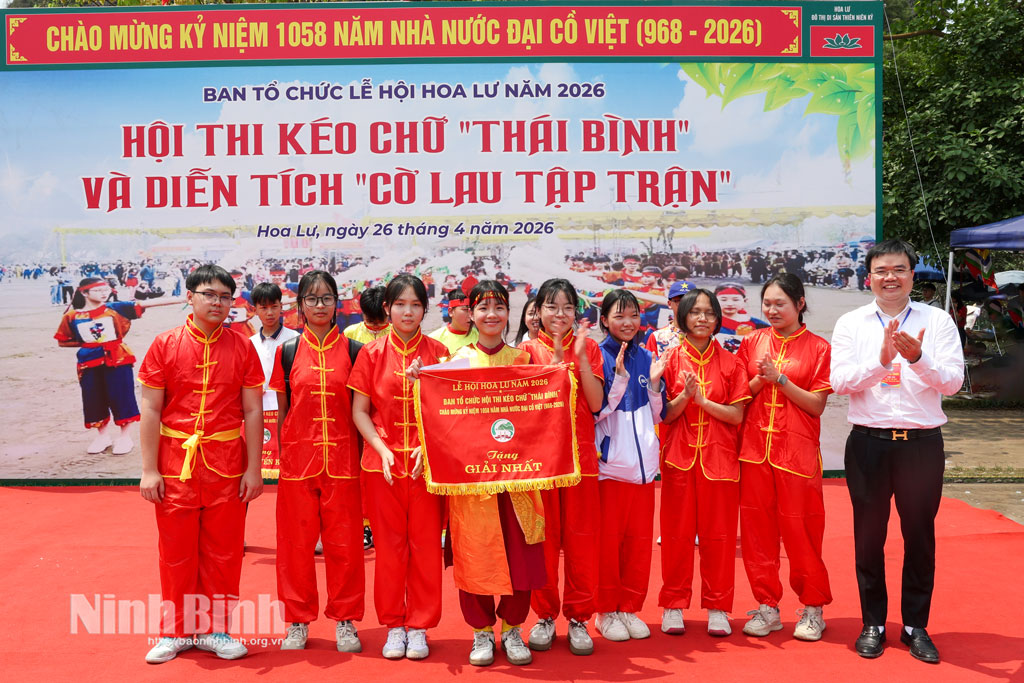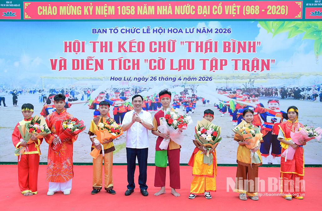 * Trong khuôn khổ Lễ hội Hoa Lư năm 2026, sáng 26/4, tại Sân lễ hội Khu Di tích Quốc gia đặc biệt Cố đô Hoa Lư, phường Hoa Lư tổ chức Hội thi kéo chữ "Thái Bình".