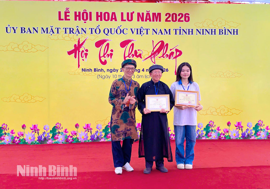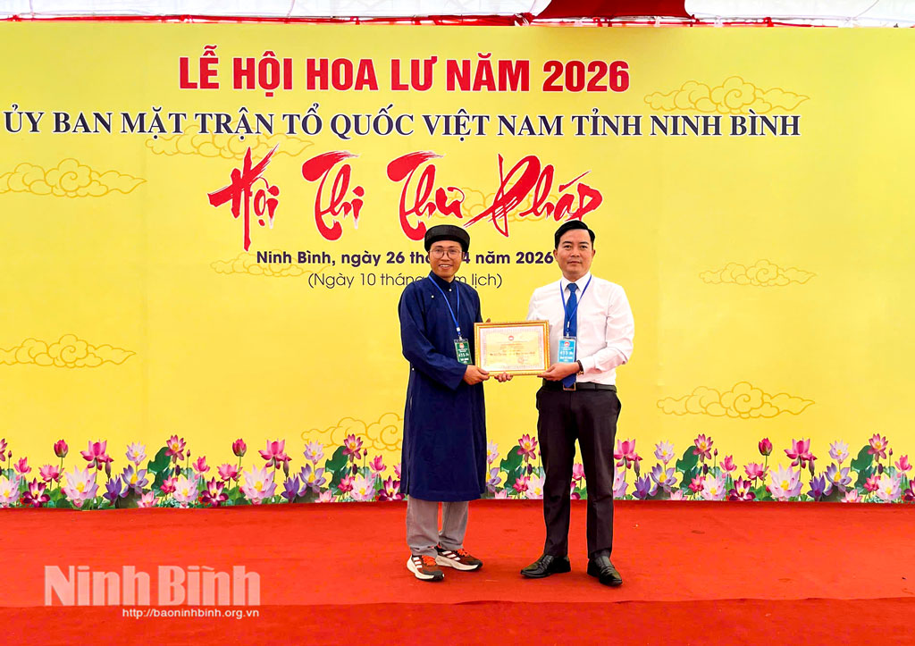 * Tiếp nối chuỗi hoạt động tại Lễ hội Hoa Lư năm 2026, sáng 26/4, Ủy ban Mặt trận Tổ quốc Việt Nam tỉnh tổ chức khai mạc Hội thi Thư pháp.