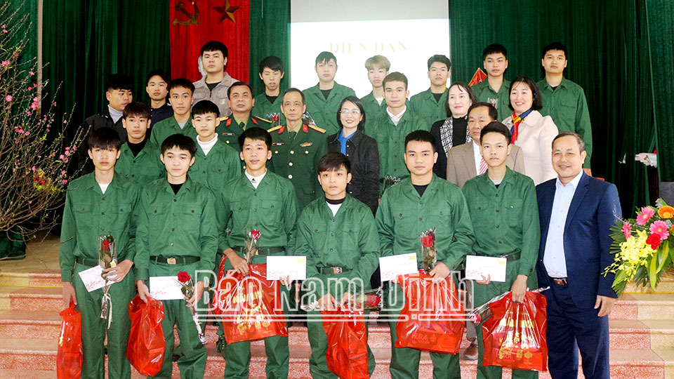 Chúng tôi có dịp tham dự Diễn đàn “Tuổi trẻ Nam Định tự hào truyền thống, tiếp bước cha anh” tại xã Nam Cường (Nam Trực) và cảm nhận được sự quan tâm, động viên của cấp ủy, chính quyền và các ngành, đoàn thể địa phương với thanh niên chuẩn bị lên đường nhập ngũ. Tại Diễn đàn đã diễn ra sôi nổi các hoạt động tuyên truyền, giáo dục, nâng cao nhận thức cho cán bộ, đoàn viên, thanh niên, học sinh về quyền và nghĩa vụ của công dân trong thực hiện nhiệm vụ bảo vệ Tổ quốc; tuyên truyền Luật NVQS, truyền thống của dân tộc, truyền thống Quân đội nhân dân Việt Nam Anh hùng, của quê hương. Qua diễn đàn, các thanh niên của xã đã nâng cao nhận thức vai trò, trách nhiệm, chuẩn bị tốt tâm thế sẵn sàng lên đường bảo vệ Tổ quốc, phát huy truyền thống cách mạng của quê hương. Thượng tá Đỗ Văn Khải, Phó Chỉ huy trưởng kiêm Tham mưu trưởng Ban CHQS huyện Nam Trực cho biết: Sau khi được giao chỉ tiêu thực hiện NVQS năm 2024, Hội đồng NVQS huyện triển khai công tác tuyển quân với sự vào cuộc đồng bộ, quyết liệt của các cấp ủy Đảng, chính quyền, Mặt trận Tổ quốc, các ban, ngành, đoàn thể. Huyện đã phát lệnh gọi khám sức khỏe 315 nam công dân với tuổi đời từ 18-25 tuổi. Trong đó, 89 công dân đạt sức khỏe loại 1, 158 công dân đạt sức khỏe loại 2 và 68 công dân đạt sức khỏe loại 3; về trình độ văn hóa, có 30 thanh niên có trình độ cao đẳng, đại học; 215 thanh niên có trình độ THPT… Nhờ làm tốt công tác tuyển quân, nên các nam công dân được tuyển chọn lên đường nhập ngũ đều đáp ứng tốt các yêu cầu về phẩm chất chính trị, trình độ văn hóa và sức khỏe. Ngay sau khi phát lệnh, các địa phương đã tổ chức giao lưu và thăm hỏi, động viên, tặng quà các tân binh sẵn sàng lên đường nhập ngũ. Toàn huyện đã tặng 117 sổ tiết kiệm (mỗi sổ trị giá 1 triệu đồng) và nhiều phần quà... với tổng trị giá 344 triệu đồng.