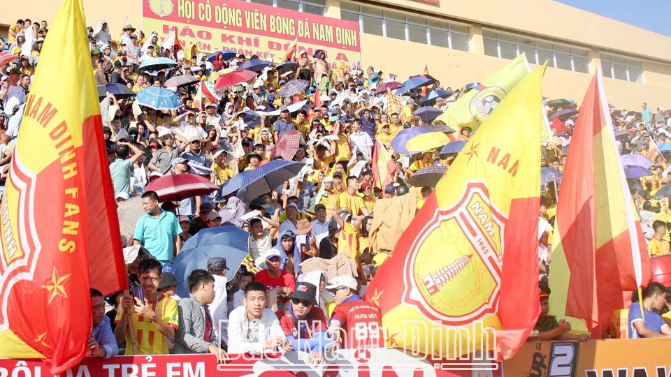 | Người hâm mộ bóng đá Nam Định luôn mang đến không khí cuồng nhiệt trong mỗi trận thi đấu. |