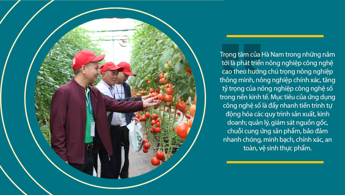Đồng chí Nguyễn Đức Vượng, TUV, Phó Chủ tịch UBND tỉnh cũng đã nhấn mạnh: Chuyển đổi số trong nông nghiệp được coi là tất yếu, là giải pháp đột phá để giải bài toán năng suất, phát triển bền vững và luôn nhận được sự quan tâm, ưu tiên hàng đầu của Đảng và Nhà nước... Tại Nghị quyết số 30/NQ-CP ngày 07/3/2017, Chính phủ đã đặt ra các giải pháp trọng tâm để thúc đẩy phát triển nông nghiệp công nghệ cao, trong đó chỉ đạo dành ít nhất 100 nghìn tỷ đồng nguồn vốn huy động từ các ngân hàng thương mại nhà nước để cho vay phát triển nông nghiệp công nghệ cao, nông nghiệp sạch với lãi suất phù hợp, thấp hơn so với lãi suất thị trường. Đặc biệt, nông nghiệp cũng được xác định là 1 trong 8 lĩnh vực được nhấn mạnh ưu tiên chuyển đổi số được đề cập tại Quyết định số 749/QĐ-TTg của Thủ tướng Chính phủ về phê duyệt “Chương trình chuyển đổi số quốc gia đến năm 2025, định hướng đến năm 2030”. Trọng tâm của Hà Nam trong những năm tới là phát triển nông nghiệp công nghệ cao theo hướng chú trọng nông nghiệp thông minh, nông nghiệp chính xác, tăng tỷ trọng của nông nghiệp công nghệ số trong nền kinh tế. Mục tiêu của ứng dụng công nghệ số là đẩy nhanh tiến trình tự động hóa các quy trình sản xuất, kinh doanh; quản lý, giám sát nguồn gốc, chuỗi cung ứng sản phẩm, bảo đảm nhanh chóng, minh bạch, chính xác, an toàn, vệ sinh thực phẩm.