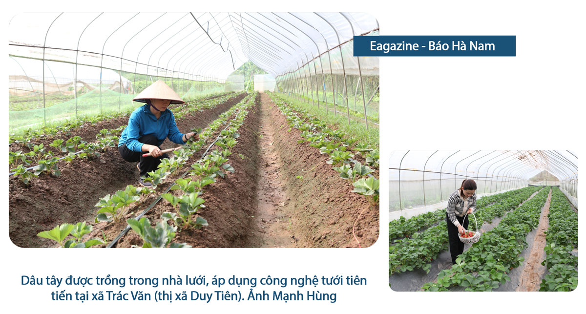 Mặc dù, mới được đầu tư xây dựng năm 2023, nhưng mô hình trồng dâu tây trong nhà màn có tổng diện tích 1.800m2 được lắp đặt hệ thống tưới nước phun sương tự động tại HTX Nông nghiệp hữu cơ Trác Văn đã bước đầu phát huy được hiệu quả. Sản phẩm chủ yếu tiêu thụ bằng kênh thương mại điện tử qua Fanpage Ichigo Farm. Chị Phạm Thị Ngọc Bé, chủ mô hình trồng dâu tây chia sẻ: Dâu tây là loại cây trồng hoàn toàn mới, có những đặc thù riêng so với sản xuất nông nghiệp chung của tỉnh. Để cây dâu tây có thể phát triển và tiếp cận được với thị trường, cơ sở đã mạnh dạn áp dụng công nghệ mới; đồng thời, đẩy mạnh các hoạt động quảng bá, giới thiệu sản phẩm ra thị trường thông qua các sàn thương mại điện tử...