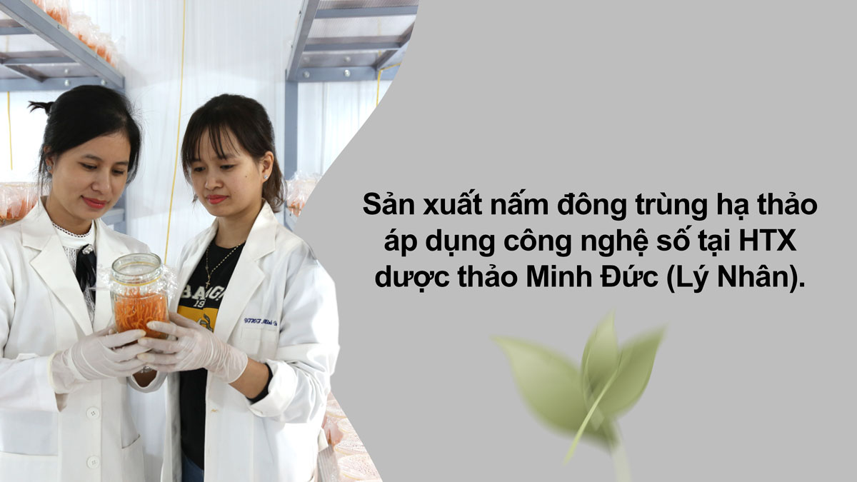 Cũng như HTX Nông nghiệp ứng dụng công nghệ cao Đồng Du, nhiều mô hình sản xuất cây trồng đang đẩy mạnh áp dụng khoa học - công nghệ. Mô hình sản xuất nấm đông trùng hạ thảo của HTX Dược thảo Minh Đức (xã Công Lý, Lý Nhân) áp dụng máy móc ở hầu hết các công đoạn từ cấy phôi giống đến quá trình trồng chăm sóc. Trong nhà trồng, HTX lắp đặt máy điều hòa nhiệt độ, máy kiểm soát nhiệt độ, độ ẩm bảo đảm phù hợp để cây nấm phát triển tốt nhất. Sản phẩm khi đưa ra thị trường với đầy đủ tem, nhãn truy xuất nguồn gốc in trên bao bì, nên đã tạo được lòng tin của người tiêu dùng. Hiện, sản phẩm của HTX được tiêu thụ khá mạnh trên hệ thống thương mại điện tử.