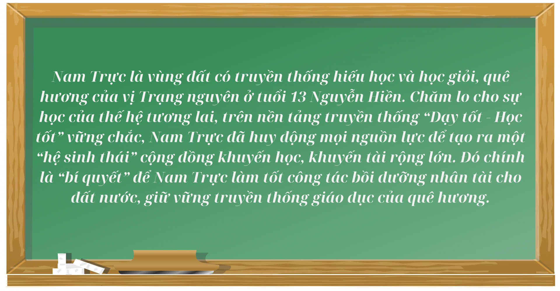 Là cái nôi nuôi dưỡng nhiều nhân tài cho đất nước, giáo dục Nam Trực đang tiếp nối truyền thống, khẳng định vị thế, đóng góp vào thành tích chung của giáo dục tỉnh nhà gần 30 năm nằm trong tốp dẫn đầu toàn quốc, niềm tự hào của bao thế hệ người con của quê hương./.