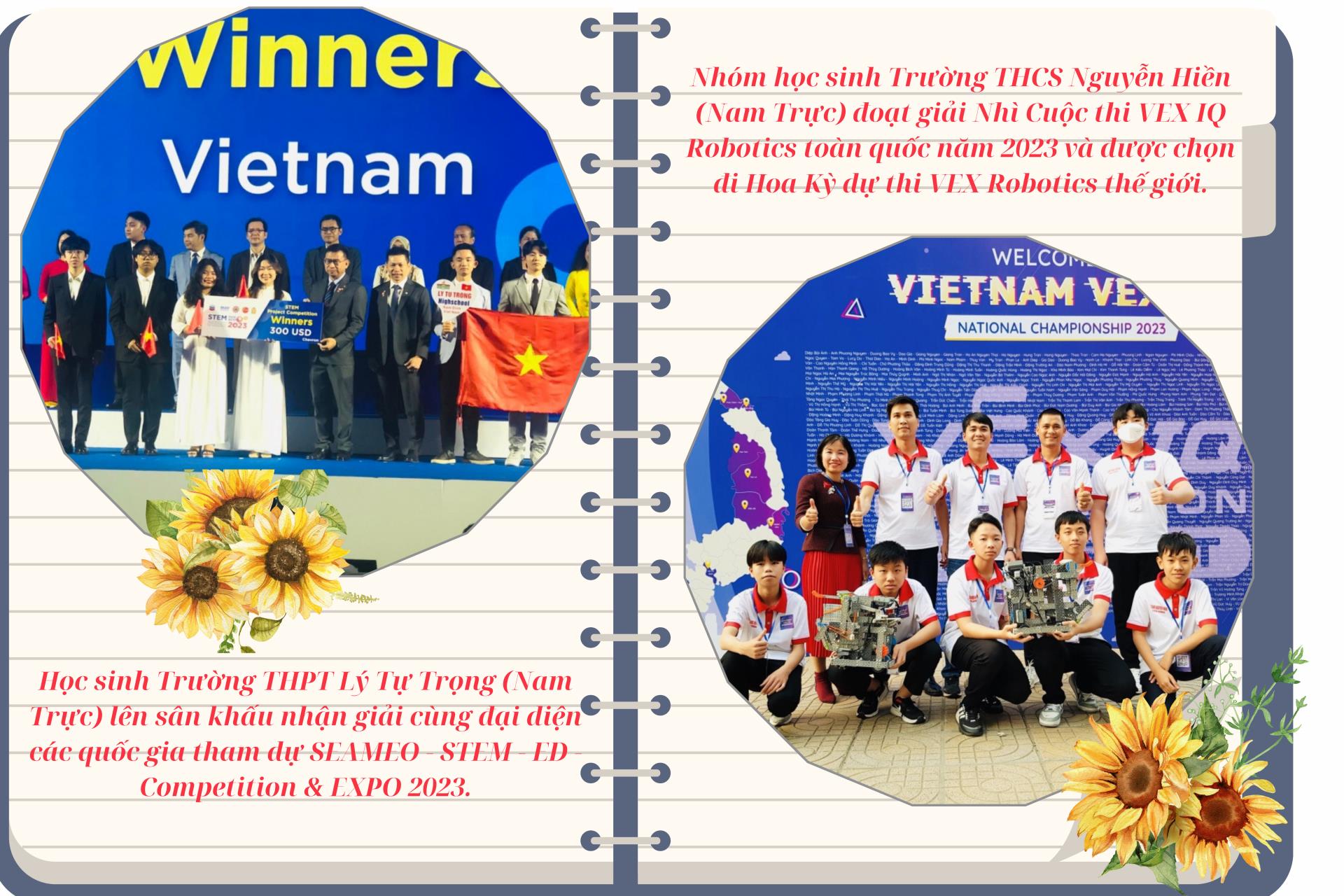 Chất lượng học sinh giỏi (HSG) là truyền thống thế mạnh của huyện Nam Trực. Nhiều năm liền, trong các kỳ thi HSG các cấp, huyện luôn đứng trong tốp dẫn đầu toàn tỉnh. Riêng năm học 2022-2023, thi HSG các môn văn hóa, toàn đoàn đoạt giải Nhất và xếp thứ hai trong 10 huyện/thành phố; 19 học sinh đoạt giải quốc tế, quốc gia; 273 em đoạt giải cấp tỉnh và trên 100 học sinh đoạt giải Nhất cấp huyện trong các cuộc thi học sinh giỏi ở tất cả các loại hình. Tiêu biểu như: Tại cuộc thi “HSG Toán Hoa Kỳ AMC8” cả 7 học sinh Trường THCS Nguyễn Hiền tham gia và đoạt giải; trong đó có 1 Huy chương Vàng, 1 Huy chương Bạc và 5 Huy chương Đồng. Huyện có 2 học sinh đoạt giải quốc tế về nghiên cứu khoa học kỹ thuật, 17 em đoạt giải cấp quốc gia, 382 em đoạt các giải Nhất, Nhì, Ba cấp tỉnh ở các cuộc thi trong năm học này. Cuộc thi “Lập trình Robotics cấp quốc gia năm 2023” với hơn 700 thí sinh của 160 đội chơi trên toàn quốc, huyện Nam Trực có 3 đội dự thi xuất sắc lọt vào Vòng Chung kết, 2 đội giành giải và được chọn dự thi thế giới tại Hoa Kỳ...