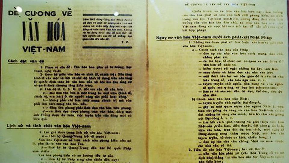 | Bản Đề cương về văn hóa Việt Nam do Tổng Bí thư Trường Chinh soạn thảo năm 1943. Ảnh: baotanglichsu.vn |