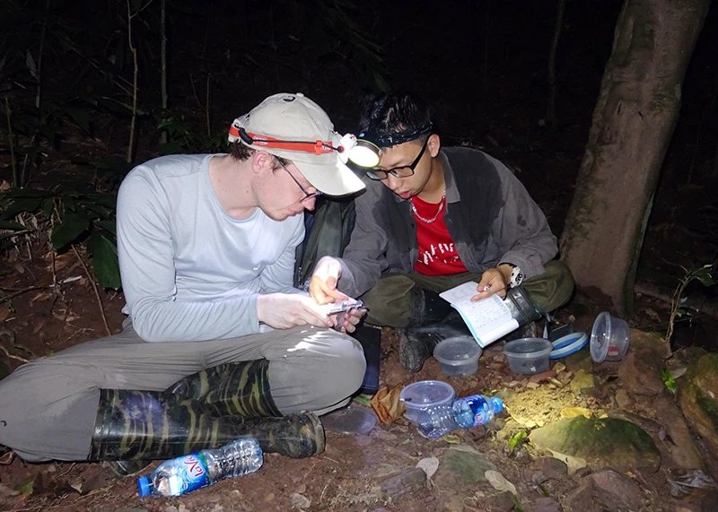 Tiến sĩ Ngô Ngọc Hải (người bên phải) cùng chuyên gia nghiên cứu người nước ngoài trong một chuyến khảo sát thực địa.