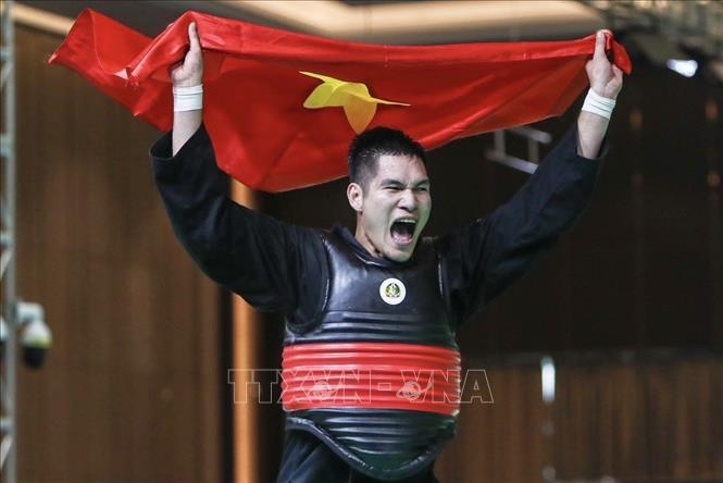 VĐV Nguyễn Duy Tuyến (Pencak Silat) bảo vệ thành công tấm HCV SEA Games ở hạng cân 80-85kg.